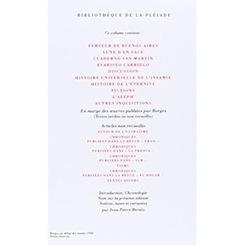 «Je n'écris pas pour une minorité choisie, qui ne m'importe guère, ni pour cette entité platonique tellement adulée qu'on surnomme la Masse. Je ne crois à aucune de ces deux abstractions, chères au démagogue. J'écris pour moi, pour mes amis et pour atténuer le cours du temps.» Sans doute Borges considérait-il les lecteurs de la Pléiade comme des amis inconnus : il envisageait avec bonheur la perspective d'entrer dans cette «Bibliothèque». Non content d'autoriser cette édition, il a pris part à son élaboration jusqu'à l'extrême fin de sa vie : il a guidé le travail de traduction et d'annotation, en livrant avec générosité ses réflexions sur son ?uvre, et en indiquant quels textes oubliés il acceptait que l'on exhumât pour l'occasion.On parlerait volontiers d'édition définitive, si Borges n'avait écrit (dans sa préface à la traduction en vers espagnol du Cimetière marin de Valéry) que «l'idée de texte définitif ne relève que de la religion ou de la fatigue»...