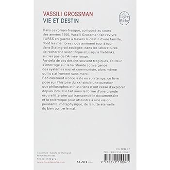 Dans ce roman-fresque, composé dans les années 1950, à la façon de Guerre et paix, Vassili Grossman (1905-1964) fait revivre l’URSS en guerre à travers le destin d’une famille, dont les membres nous amènent tour à tour dans Stalingrad assiégée, dans les laboratoires de recherche scientifique, dans la vie ordinaire du peuple russe, et jusqu’à Treblinka sur les pas de l’Armée rouge. Au-delà de ces destins souvent tragiques, il s’interroge sur la terrifiante convergence des systèmes nazi et communiste alors même qu’ils s’affrontent sans merci.Radicalement iconoclaste en son temps – le manuscrit fut confisqué par le KGB, tandis qu’une copie parvenait clandestinement en Occident –, ce livre pose sur l’histoire du xxe siècle une question que philosophes et historiens n’ont cessé d’explorer depuis lors. Il le fait sous la forme d’une grande œuvre littéraire, imprégnée de vie et d’humanité, qui transcende le documentaire et la polémique pour atteindre à une vision puissante, métaphysique, de la lutte éternelle du bien contre le mal.